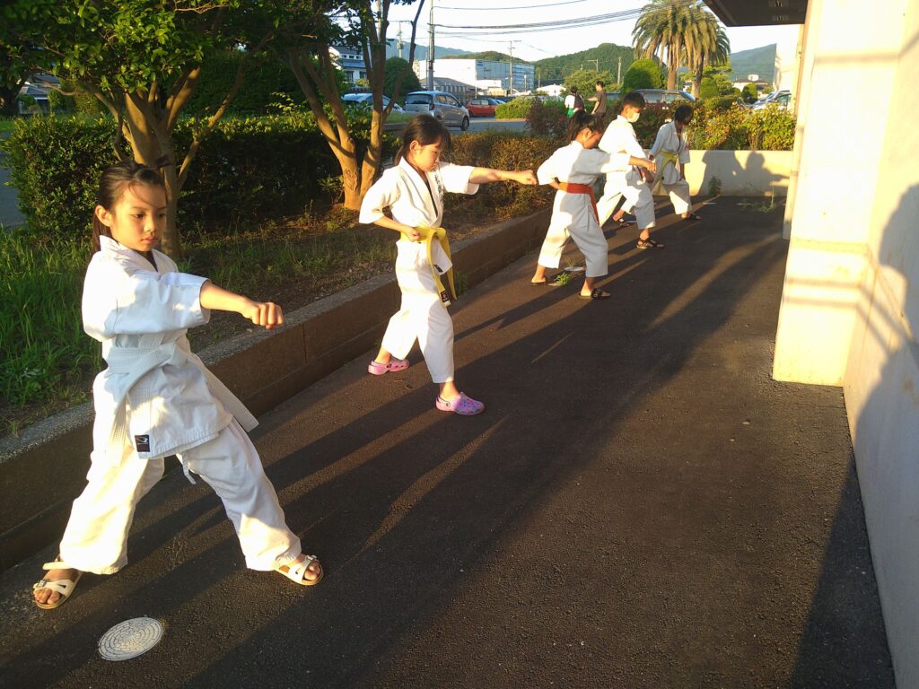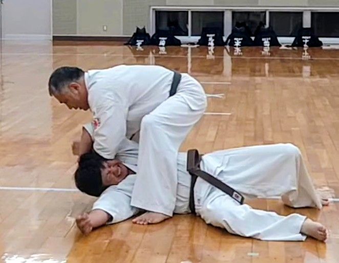 護身においては、大きな声を出すこと、走って逃げることが基本です。しかし、それでも避けられない危険な状況に直面した場合に備え、実践空手を軸に、護身術や柔術など、現実を想定した稽古を行っています。